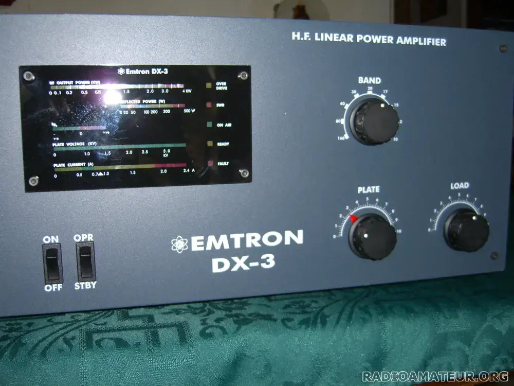 Vend amplificateur linéaire bandes décamétriques EMTRON DX3 avec tube GU 78B . Puissance sortie sur 50 Ohms 3kw CW, 4Kw PEP avec 80W input. Nombreuses protections : courant plaque, courant grille, swr, température, linéarité. Peu servi, trés bon état fonctionnel et aspect. Notices et emballages d'origine. Vidéo de démo et manuel en pdf disponibles.