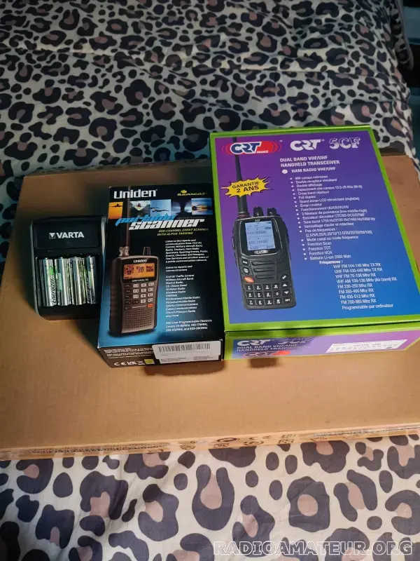 Faisant suite à ma future brocante de matériel divers, je cède ce portatif bi-bande 144/430 mhz de CRT 5CF avec double récepteurs ouvert en export de 136-174 mhz et de 400-512 mhz avec réception uniquement de la bande aéro vhf .... Complet dans le carton d'origine ainsi que accessoires inclus comme 2 batteries neuves, un éliminateur de batterie, et un chargeur de bureau en supplément ( tout ces informations seront sur le site de CRT ) je rajouterai ce portatif en cadeau le portatif de Uniden Ubc125xlt avec son logiciel Arc125 et un chargeur de piles rechargeables .....Si intéressé contactez moi par mail avec un no de téléphone ?