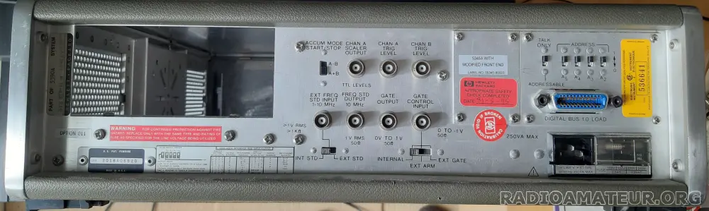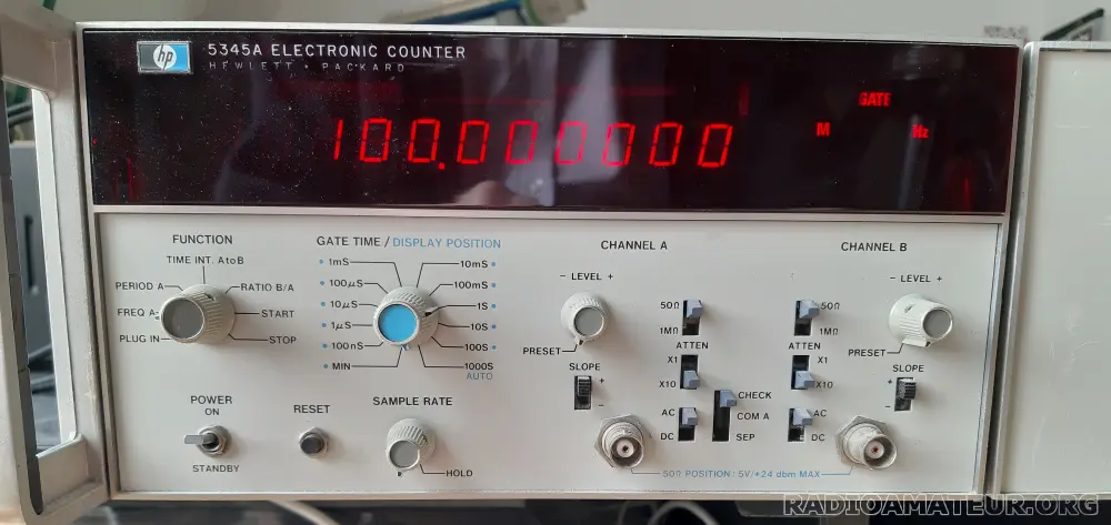 À vendre : un fréquencemètre HP5345A. Unité de base uniquement, couvrant jusqu’à 500 MHz. En très bon état et fonctionne parfaitement. Contient le célèbre oscillateur à quartz thermostabilisé (OCXO) 10811. Numéro de série : 2016A06620.