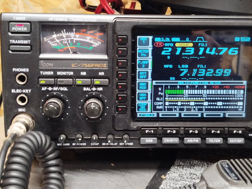 Icom IC-756 Pro II En très bon état. Micro HM-36 . Pas de carton d'origine. HF/50Mhz 1.8-30/50-52Mhz Ouvert toutes bandes. Puissance 100W. Pas d'envoi.