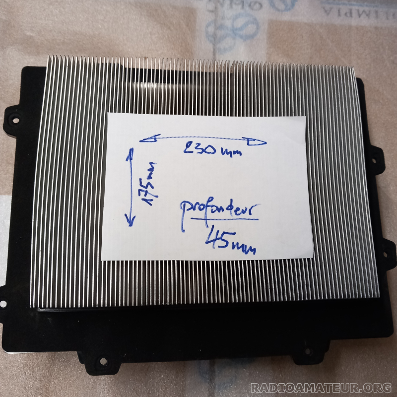 Je propose plusieurs radiateurs en aluminium pour PA à transistors: L=230mm l=175mm h=45mm pour PA de bonne facture