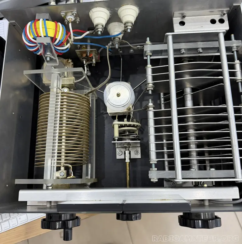 Tuner aux composants démesurés vraiment US. Sortie coax OU bifilaire OU long fil. Une très bonne réalisation. Fonctionne très bien. Un seul bémol, les afficheurs en façade doivent être réalignés. Une fois les accords réalisés la bande passante est très large. Pour OM confirmé. Je reste à votre écoute.