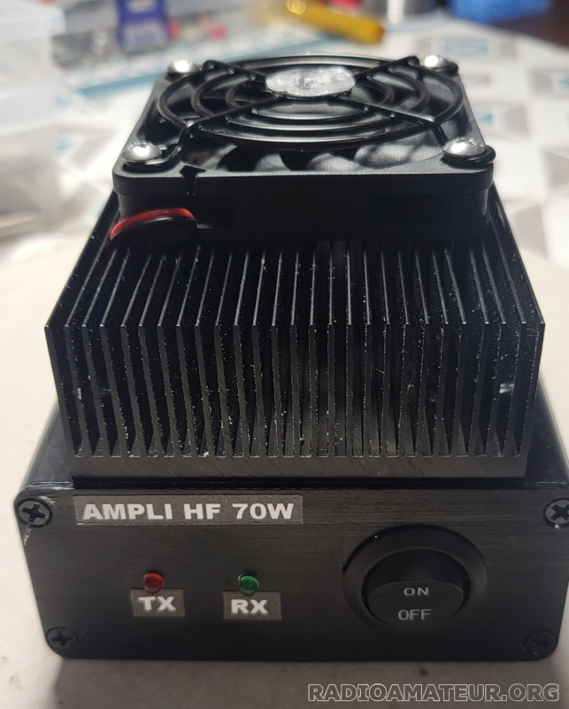 Vends un amplificateur de puissance HF 70W avec 5W entrée max sous 13.8V, réalisation OM à partir du kit bien connu, j'y ai ajouté un Vox HF et un ventilateur thermostatique. Convient parfaitement derrière un FT 817/818 ou autre TX avec faible puissance de sortie. Neuf, vendu au prix des composants.. Prix ferme, Paypal et port compris