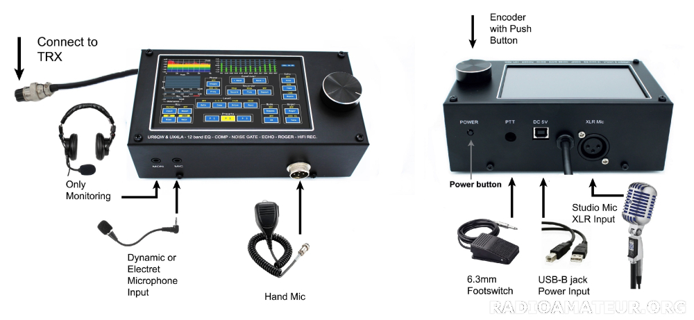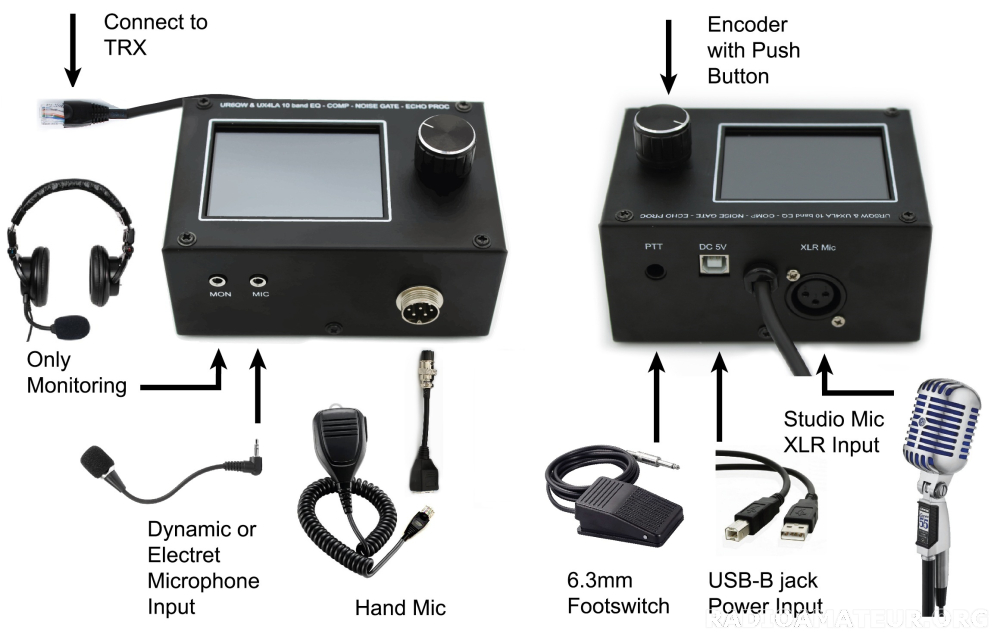 "Le nouvel égaliseur numérique 10 bandes, l'amplificateur de microphone à faible bruit, le compresseur et le processeur d'écho Roger-Beep rendront votre son parfait. L'appareil dispose d'un écran de 3,2"", est fabriqué dans un boîtier métallique et est protégé contre les interférences même lorsqu'il fonctionne avec une puissance de 2 kW. La fonction Noise Gate supprimera le bruit de votre ampli et les autres bruits ambiants. Appuyez simplement sur le bouton DX et votre signal sera le plus lisible dans le bruit et se démarquera dans Pileup. Vous pouvez également personnaliser le signal ESSB avec de bonnes basses douces. L'égaliseur 10 bandes prend en charge tous les types de microphones. Même ceux à condensateur, qui nécessitent une alimentation 48V (l'alimentation 48V est déjà à l'intérieur). Entrées microphone 3,5 mm, 8 broches, XLR. Le brochage peut servir à la connexion à Icom, Yaesu Kenwood et à d'autres émetteurs-récepteurs. La couleur de la poignée peut varier. Premium Expédition rapide via DHL (4–7 jours depuis l’Allemagne) Vous pouvez m'écrire sur WhatsApp"