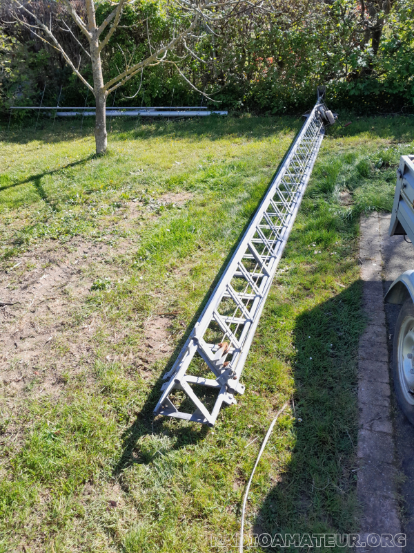 Bonjour, Vends pylône CTA 12, 2 x 6 M télescopique non Basculant, 12 m en tête de flèche, ce qui vous dispense de toutes déclaration à la Mairie. le câble du treuil est en INOX rupture à 1450 Kgs, le tout fonctionne très bien, pignons régulièrement graissés. le pylône est à terre prêt pour l'enlèvement sur place, ou possibilité de livraison dans la proche région. photos sur demande 73 Claude F5PYJ