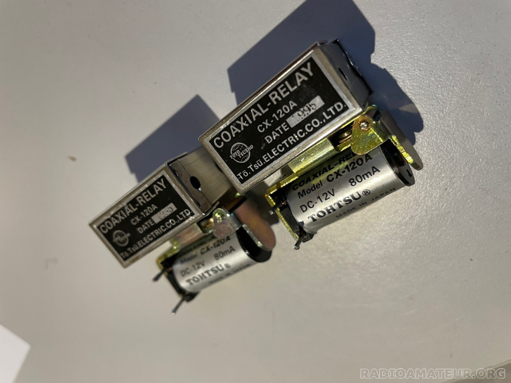 Lot de 2 relais coax TOHTSU CX-120A, très bon état. Très peu utilisés, uniquement sur un petit ampli VHF.