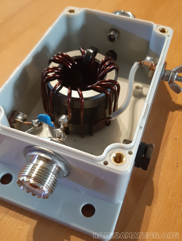 Réalisé en fil émaillé double isolation de 1,5mm², 2 tores empilés de chez FairRite (mix 52), entrée en SO239, sortie long fil et contrepoids sur visserie inox A4 et écrou papillon. Boitier étanche IP67(10x6cm) avec vanne de ventilation, joint d'étanchéité et oeillet inox. Rendement > 97,4% du 160 au 10m, et SWR max = 1,3:1 sur charge 450 Ohms. Construction soignée et performances vérifiées. 49 Euros + port (9 euros par Colissimo, 5 euros par Mondial relay) Paypal préféré.