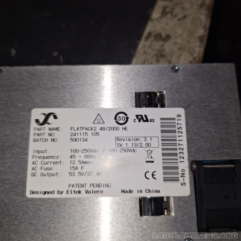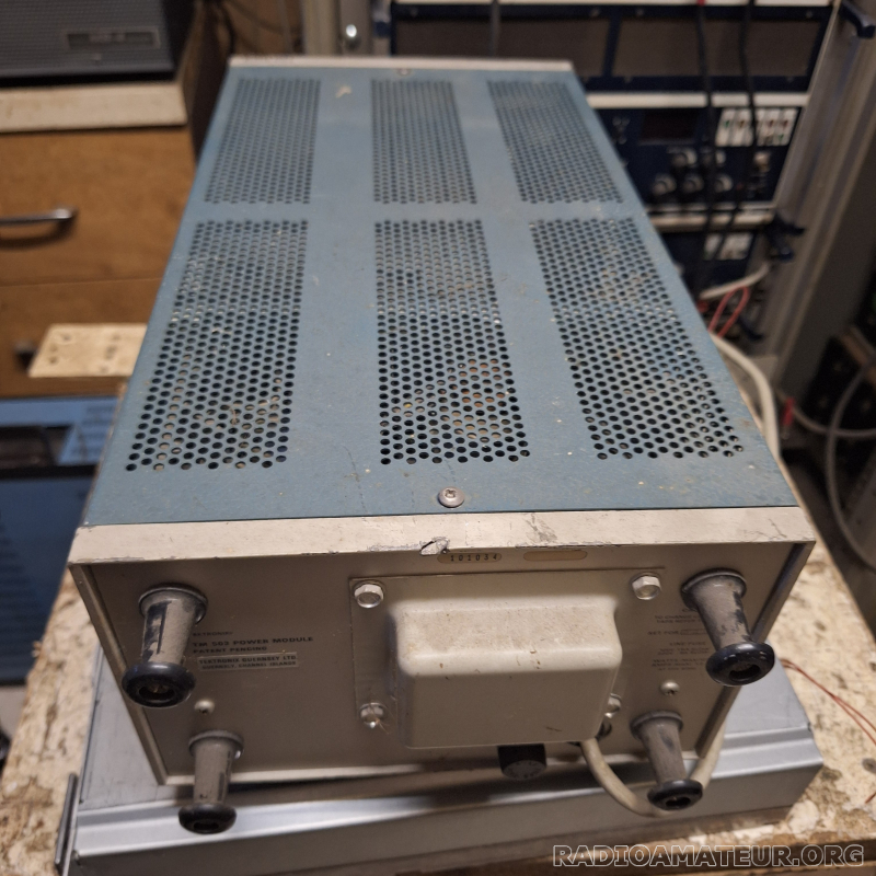 Alimentation en très bon état cosmétique et de fonctionnement Pouvant délivrer 50 Ampères constant et jusqu'à 55 Ampères en crète en condition d'utilisation normale et placée dans un endroit suffisamment ventilé réglage de la tension de sortie de 9 à 15V Electronique à découpage ajustement de la fréquence de découpage. Sélection de la tension fixe ou réglable Ventilation régulée protection contre les courts circuits. Fusible primaire : 8 Amps Dimensions : 170 x 130 x 280 mm Poids : 3 Kg