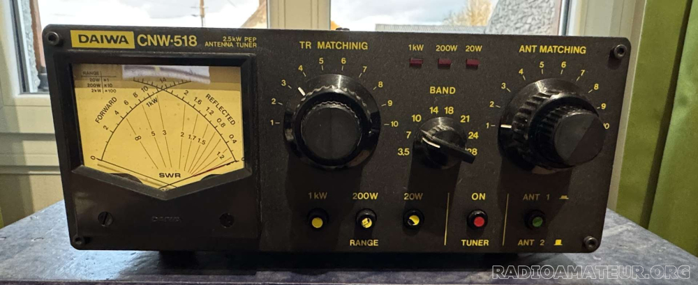 Bonjour à tous, Vends Tuner d’antenne DAIWA CNW-518 deux Kilowatts 2,5 PEP Complet carton d’origine, notice, cordon état proche du neuf. OM non-fumeur.