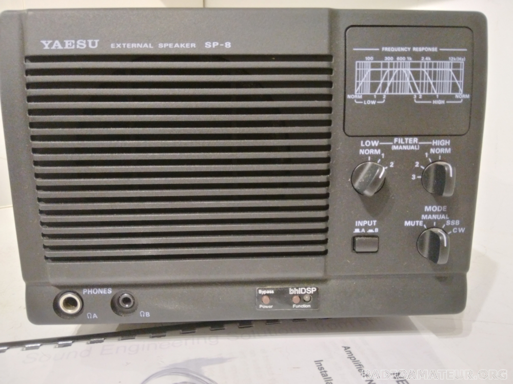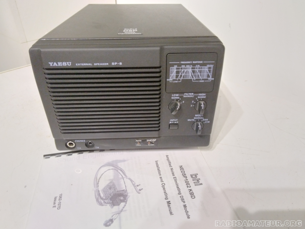 Haut-parleur Yaesu SP8 avec DSP BHI intégré. L'ensemble est dans un état de présentation et de fonctionnement irréprochable, livré avec no ti ce complète et détaillée, sans cordon d'alimentation. Valeur de l'ensemble 280 euros, cédé à 180 euros