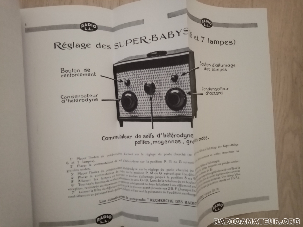Fac-similé d'une brochure éditée par les Établissements Radio-L.L. "Brochure explicative dont les indications permettront, à n'imoorte quelle personne, même non initiée à la T.S.F. de monter rapidement et régler avec facilité un Super-Baby à 5, 6 ou 7 lampes." Brevets Lucien Lévy 16 pages Format 21x29,7 Envoi par la Poste, Mondial Relay ou Shop2Shop. Remise en main propre sur Paris 13e (Olympiades).