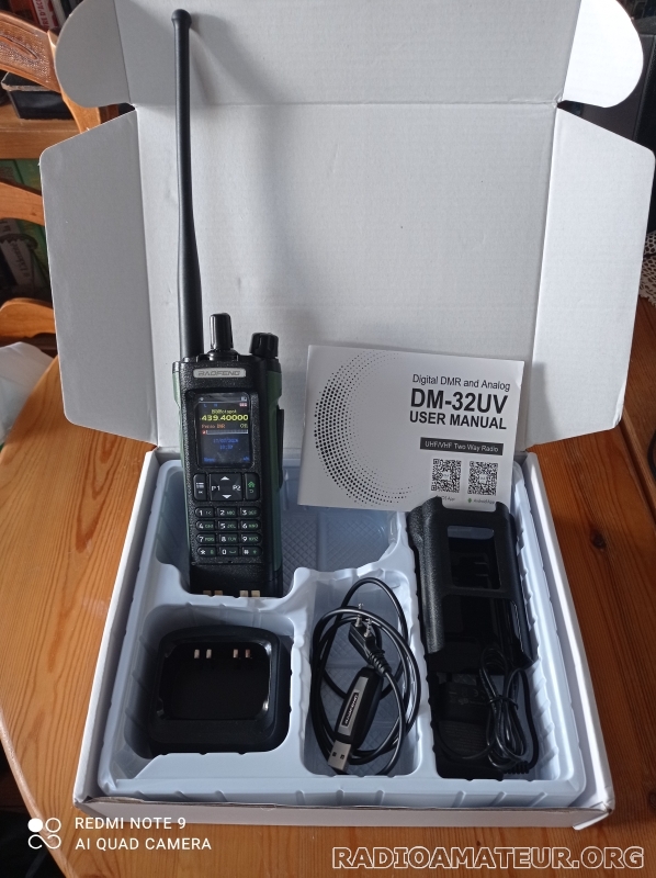 Baofeng DM32 UV multibandes VHF UHF ,réception marine, aviation, FM broadcast, GPS intégré, puissance max émission 8 W. Cordon programmation et alimentation USB C. CPS programmé relais VHF UHF DMR. Parfait état.