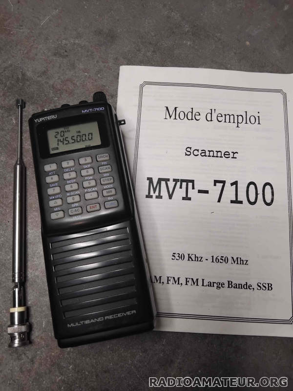 Vends récepteur scanner Yupiteru modèle MVT 7100 - B.E - 530 khz à 1650 mhz - Tous modes - 12 valeurs de pas - Alimentation par 4 piles LR 6 - Livré avec antenne téléscopique et notice en français.