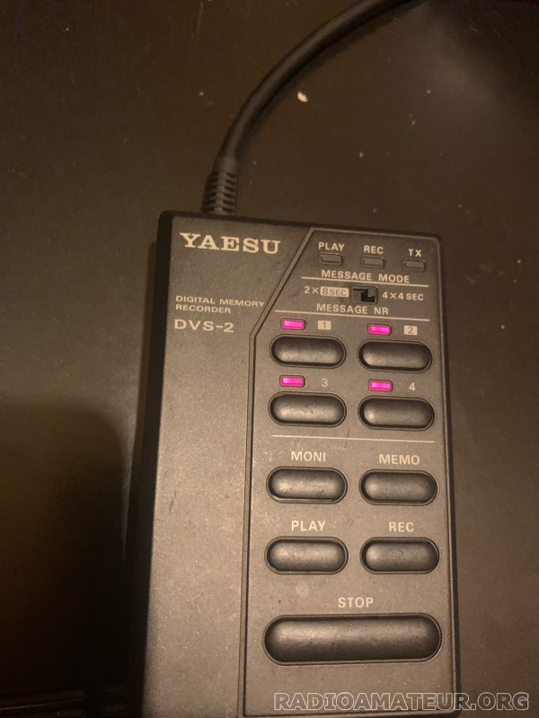 Vends un très beau Yaesu DVS-2. Le DVS-2 est un lanceur d'appel et un enregistreur. Vous pouvez enregistrer jusqu'à 4 messages d'appel (4 mémoires) de 4 secondes ou bien 2 messages de 8 secondes (mémoire 1 et 2), idéal pour lancer appel. Il permet également d'enregistrer son correspondant ou bien un qso durant 16 secondes. Le DVS-2 a été testé avant la mise en ligne de l'annonce (vidéo possible du test). Il est fait pour des trx équipés de la prise arrière DVS-2 comme les yaesu FT990, FT1000D, FT1000 MP, FT1000 MP MK5, FT 1000 MP Field. Equipement devenu très rare voir introuvable à ce jour. Excellent état d'esthétique et de fonctionnement. Le prix est de 125 euros + frais de port (par mondial relay ou colissimo), paiement par Paypal (en mode entre proches/amis) ou chèque, envoi rapide et sérieux.