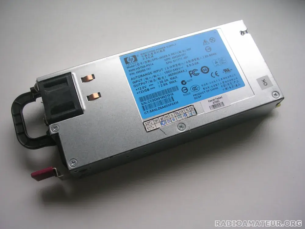 Vends bloc alimentation 12V DC 38,3A HP HSTNS-PD14 .Ce bloc alimentation est modifiable en 13,8V - La documentation est fournie pour la modification mais je peux aussi faire la modification pour vous moyennant un supplément - Possibilité de fournir un cordon secteur également - Prix 12 Euros + port 2kg - Comptez 7,40 Euros de port via Mondial Relay et 10,50 Euros via Colissimo. Plusieurs unités disponibles.