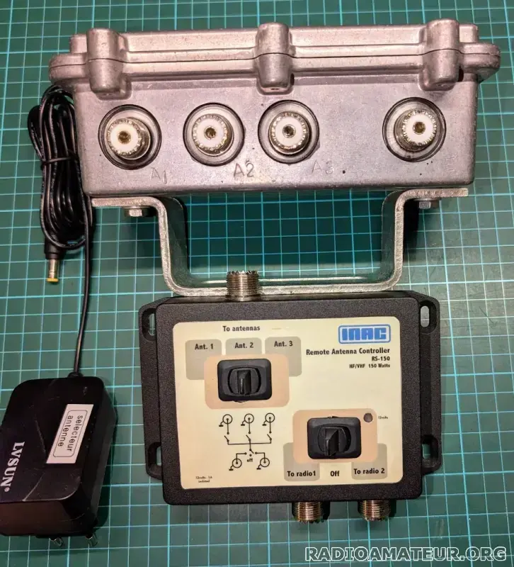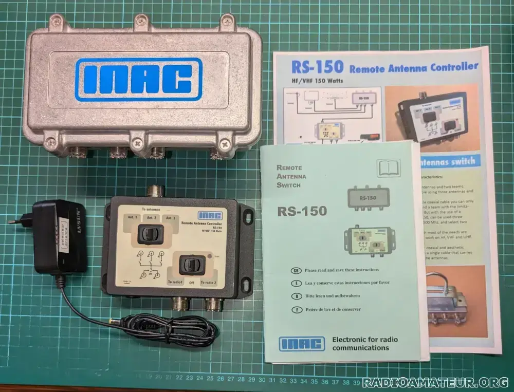 Vends un commutateur d'antennes "INAC RS-150" permettant de sélectionner à distance entre 3 antennes différentes ; et entre 2 transceivers en local. Très bon état. La commande à distance passe par le coaxial branché entre les 2 boitiers, pas d'autre câble. Fonctionne bien en HF 1.8 à 50 MHz. (TOS : 1.1 à 1.2)