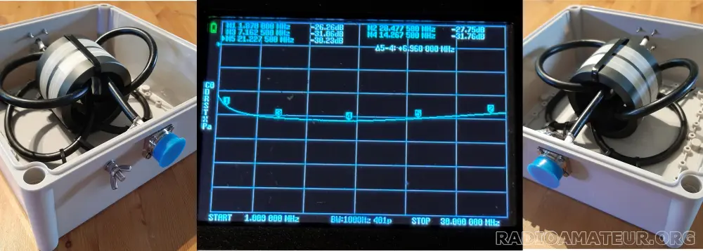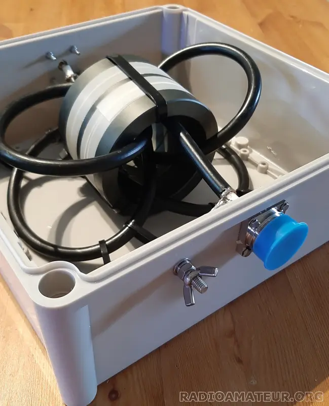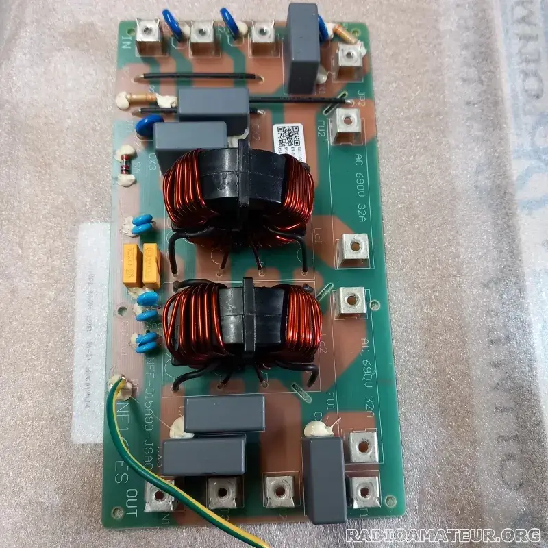 Vds choke RF (très) QRO de 10KW, composé de 3 tores FT400 (100mm de diamètre, 25mm de hauteur chacun), soit 1,3Kg de ferrite. Bobinage en coaxial AirBorne10 de Messi&Paolini, Connecteur DIN 7/16, prise de masse supplémentaire en visserie M6. Boitier de 28x28cm avec 2 vannes de ventilation. Version toutes bandes 160 au 10m avec de 26 à 31dB de réjection du mode commun. Autres versions optimisées sur demande (Cf image). 279 euros + port (17 euros par Colissimo, 13 euros par Mondial Relay).