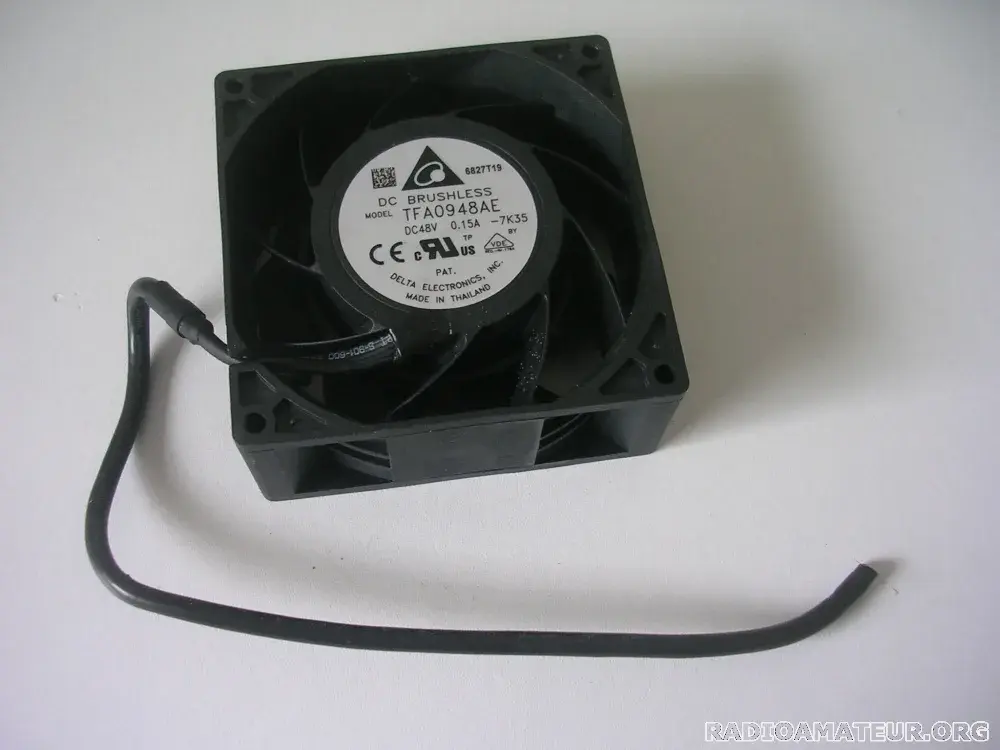 Vends un lot de 4 ventilateurs 48V DC 0,15A de marque DELTA ELECTRONICS référence TFA0948AE, dimensions 92 x 92 mm épaisseur 38mm - Issus de démontage mais propres et en parfait état - Longueur du cordon 20cm environ - Pour gros PA à transistors LDMOS ou GaN - Prix du lot 8 Euros + port. Comptez 6,60 Euros de port via Mondial Relay et 10,70 Euros via Colissimo.