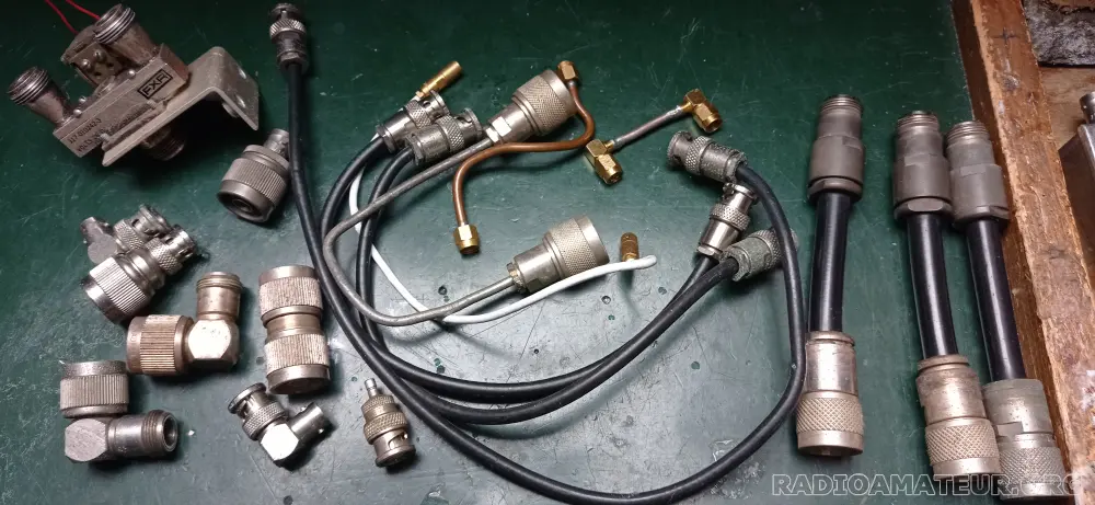 Lot comprenant un relais en 3 X N, 50 ohm, 26 volts et divers raccords coax . Voir photo. Expedition MR.
