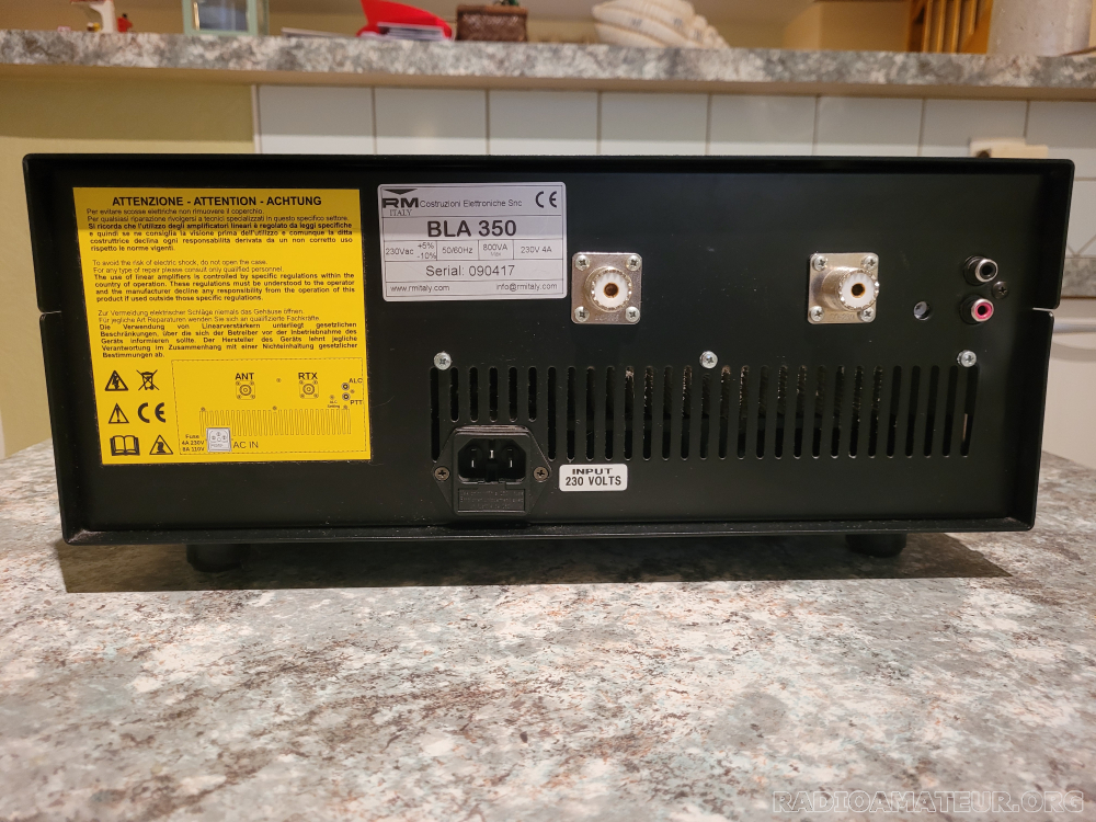 Vends ampli RM-Italy modèle BLA-350 en parfait état de fonctionnement et en parfait état cosmétique. Pour mémoire, amplificateur tous modes (AM/FM/SSB/CW), de 1,8 à 30 MHz) alimentation en 220 volts, dimensions : 358x270x160mm, poids 14 kgrs, entrée entre 1 et 12watts, sortie 300w (sur certaines bandes un peu plus). Avec son carton d'origine. Prix demandé : 650 € + port en plus. Paiement par PayPal et envoi par Mondial relais préféré. D'autres photos possibles sur demande. Cordialement, Sébastien F8IJV