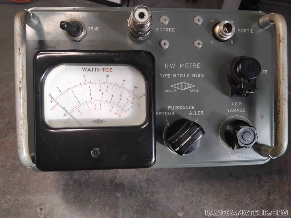 Vends Wattmétre/ Réflectomètre Férisol modéle NTO101- B.E - deux calibres PWR 7 et 25 watts + mesure du ROS - Fréquences de 75 à 500 mhz - E/S sur fiches N - adaptateurs PL et BNC fournis + charge fictive 50 ohms/ 50 watts fixée à l'arrière de l'appareil (non visible sur la photo) Notice en français - pas de capot - Appareil robuste