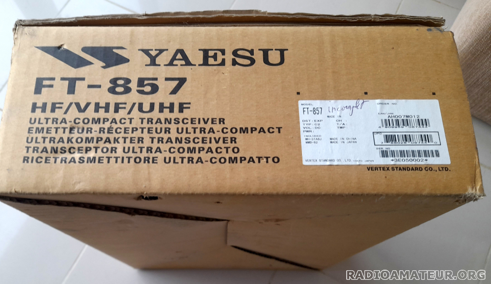 Boîte du FT-857 en bon état extérieur, mais manque les mousses et cartons internes. Port France par Mondial Relais inclus. Paiement PAYPAL entre proches ou virement bancaire. Voyez mes autres annonces en tapant CT7ANH dans la recherche. 73 de Christian ex-F5OLS