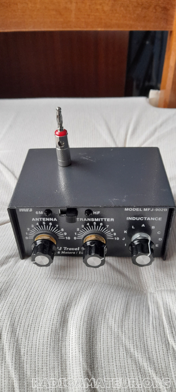 Vends un TUNER MFJ-993 b comme neuf 300 watts peut servi cause double emplois Fréquences : 1.8- 30 Mhz. Imédance d'entrée : 50 Ohms. Puissance d'entrée : 150 W PEP. Sintonisation en moins de 15 sec. 4 Banques de mémoire pour antenne, plus de 2500 positions par banque. Couverture continue de fréquence entre 1,8 et 30 Mhz. ROE réglable entre 1,0 et 2,0. LCD multifonction rétroilluminée avec contrôle de contraste. Indicateur sonore de ROE avec contrôle de volume. 2 Connecteurs coaxiales SO-239 pour antennes. Connecteur d'antenne d'un seul fil. Consommation de courant : Moins de 1 A. Dimensions approx.: 257 mm ample x 71 mm haut x 234 mm prof. (sans connecteurs) Poids approx. : 1,77 Kg. envois par mondiale relais et paiement paypal
