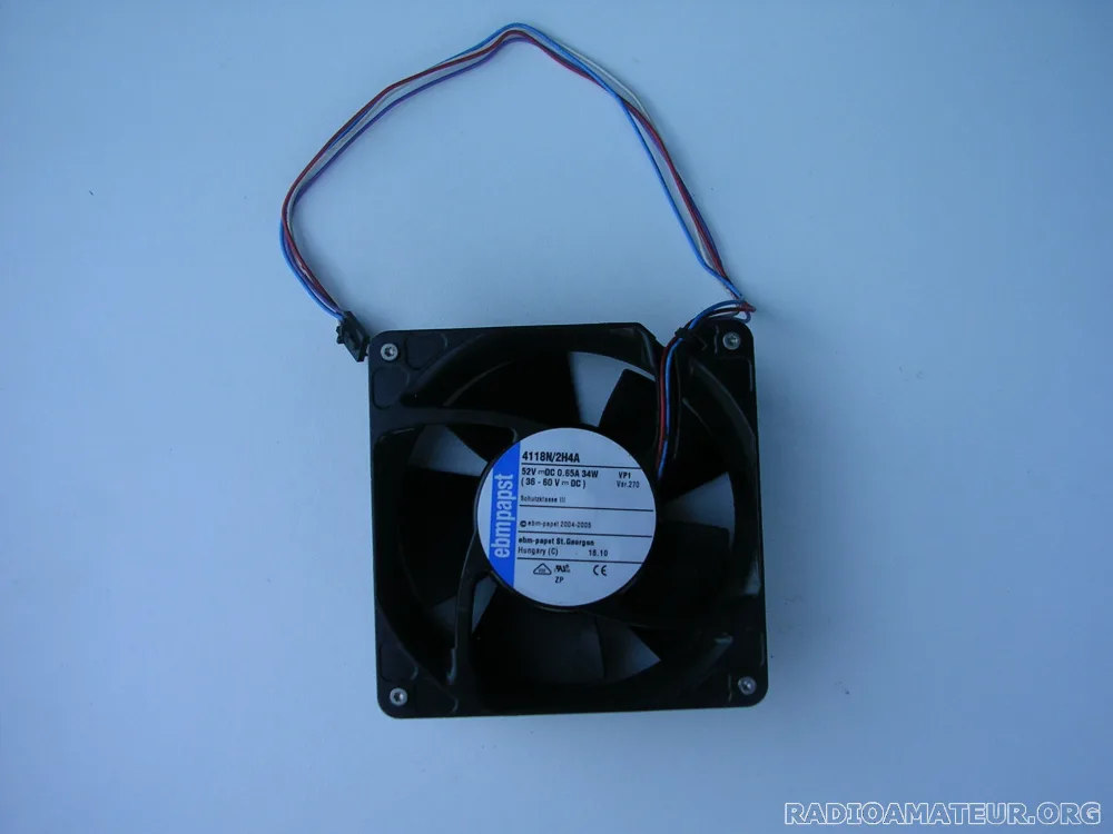 Vends un lot de 6 ventilateurs 48V DC ( 36 à 60V ) 0,65 A 34W de marque EBMPAPST référence 4118N/2H4A, dimensions 119 x 119 mm épaisseur 38mm - Issus de démontage mais propres et en parfait état - Longueur du cordon 30cm environ - Pour gros PA à transistors LDMOS ou GaN - Prix du lot 20 Euros + port. Comptez 15,10 Euros de port via Mondial Relay et 19,40 Euros via Colissimo.