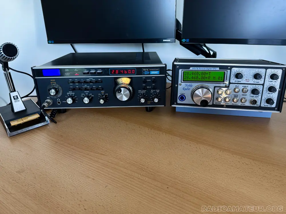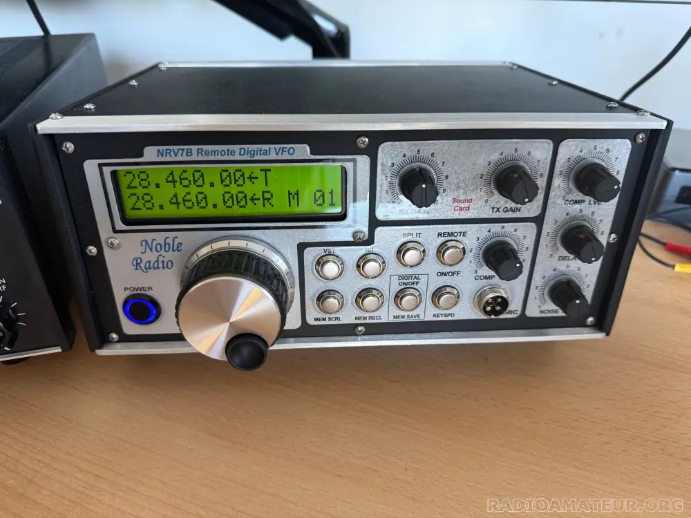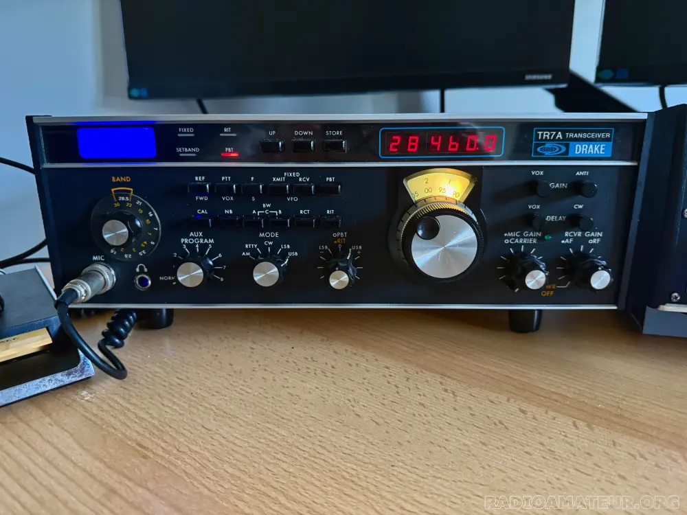 Le célèbre émetteur-récepteur Drake TR7A (dernière version) équipé du Noble NRV7B avec VFO DDS, panadapter intégré, interface USB Winkeyer et compresseur vocal. Le NRV7B transforme le Drake TR7A en une station du XXIe siècle. (Voir le site web de Noble) Ce Drake TR7A a subi un certain nombre de modifications visant à améliorer ses performances. Remplacement des condensateurs au tantale, remplacement du mélangeur SBL1 sur le premier mélangeur par un mélangeur haut niveau RAY1, augmentation du niveau d'OL à +20 dBm, remplacement de toutes les diodes 1N4148 dans les mélangeurs par des Shottky 1N5711, ajout d'une sortie 0 dBm entre le driver et le SSPA, ce qui permet de piloter des transvertisseurs 50/144/432/1296 en IF 14/21/28 MHz. État exceptionnel et bien aligné, bien entendu, tant en réception qu'en émission. Le TR7A est équipé de tous les filtres optionnels et du NB7A, y compris un filtre à quartz Noble NR-FL2.8 à 8 pôles. Fourni avec un microphone Trio MC50 d'origine, très rare, ainsi que le manuel d'origine et les manuels d'entretien en anglais et en français.
