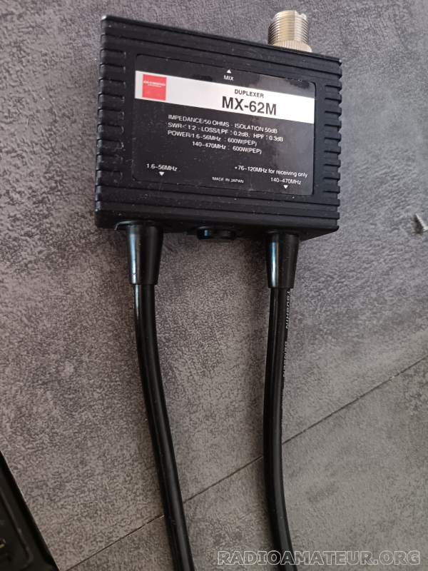 Bonjour. je vend car plus utilité un duplexeur MX62M comme neuf 16 a 56 mhz 76 a 570 mhz 35 euros