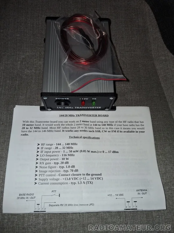 Vends transverter 28/144 UT5JCW, neuf, jamais mis sous tension. Voir caractéristiques sur la photo.
