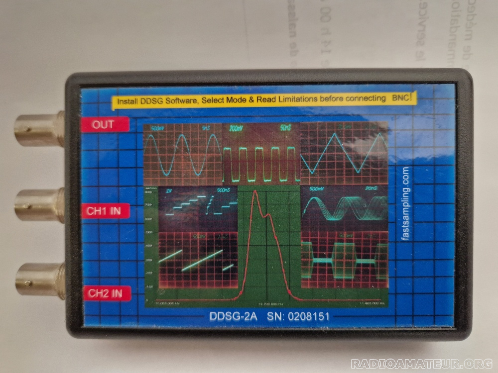 Je vends ce générateur / oscilloscope 2 voies USB DDSG-2A - la documentation se trouve sur le net - je fournis l'alimentation et le CD du logiciel - expédition possible par Mondial Relay - F1FCO, Pierre à Nîmes