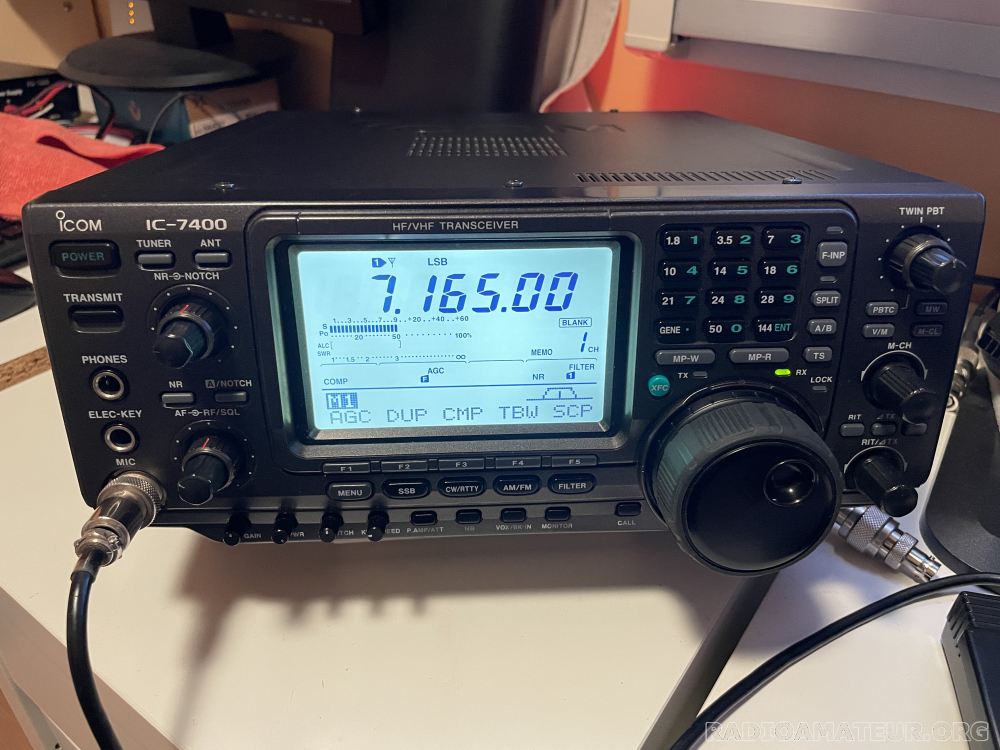 Bonjour, Je me sépare de mon ICOM IC 7400 qui est en excellent état de présentation et de fonctionnement (Om maniaque). Appareil de dernière série produite, acheté chez Csy&Son, deuxième main avec facture d'achat, carton d'emballage d'origine, notice en français, fournie avec câble d'alimentation d'origine, en option le Unit CR338. Il est ouvert en fréquences HF+VHF. A Saisir à retirer de préférence sur place dans le 33. PRIX : 750 Euros.