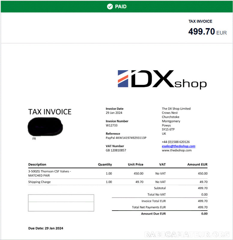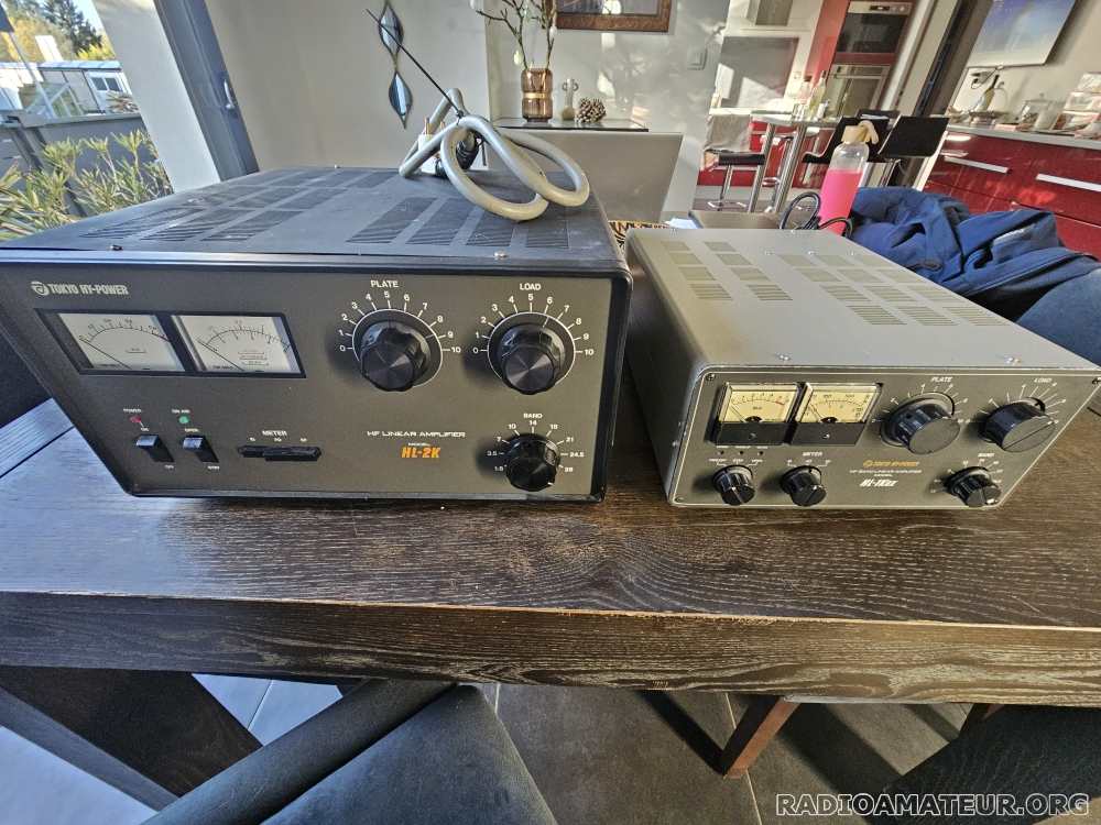 Je vends mon amplificateur linéaire HF Tokyo HY POWER HL-2K une référence de robustesse japonaise. TUBES neufs 2024 : Paire de 3-500ZG appairés DX shop (facture) ALIMENTATION REFAITE : Banque de condensateurs Haute Tension remplacée à neuf 2025 (photo) TRANSFORMATEUR : En pleine santé. Haute Tension mesurée à 3400V au repos et 3000V en pleine charge Sort 1400 Watts réels (PEP) sur charge fictive avec drive 100 W, l'idéal étant d'utiliser un drive de 70 à 80 W pour 1200 w.