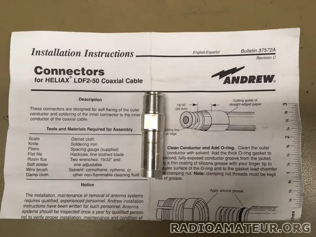 Bonjour, vends 2 kits de mise à la terre pour câble ½ pouce, référence Andrew type 204989-1, prix de vente 30 euros port 7euros, paiement de préférence via Paypal.