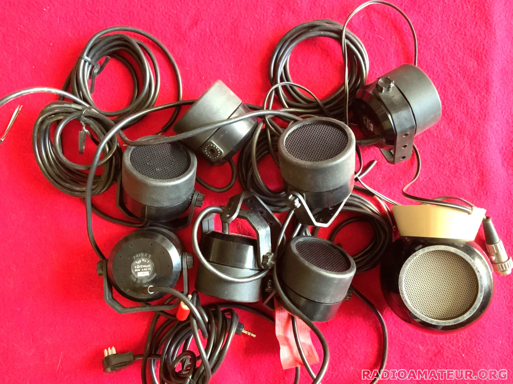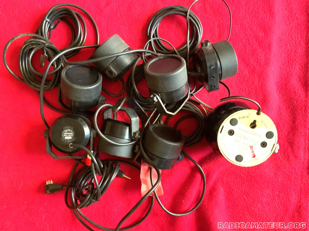 Petits HP pour radio communication, marque Peiker. Impédance 4 ohms, puissance max 5W, bande passante 300Hz-6kHz- Cordon avec jack 3.5 mm et à broches, certains absents , Boitier en plastique noir, diamètre 58 mm, poids 175g .Voir les clichés proposés pour lire les caractéristiques . Matériel vendu au profit de l’épouse de Raymond F6BKC SK. La vente concerne le lot le port est inclus dans le prix;si envoi, il se fera par MondialRelay. Merci de m’avoir lu.