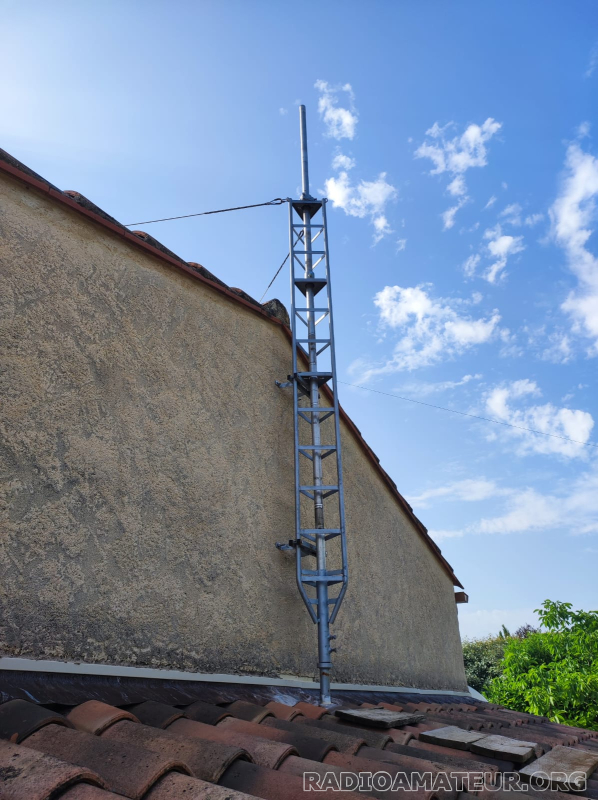 Vend pylône triangulaire L=3.25m, largeur 33cm avec roulement de sortie de tube ( voir photos ) + tube acier galvanisé de 4m + un autre de 2.5m. L' ensemble est déposé au sol à prendre sur place dans le département 83.
