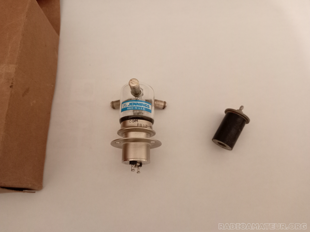 Relai sous vide Jennings RB1D neuf. Modèle avec bobine 115v continu ( PA Collins 30L1, Heathkit SB200 et SB220 etc.), fourni avec une bobine 48v continu d'occasion testée ( interchangeables, 1 écrou à défaire). Connections HF par cosses et vis. Mounting: Flange. Test Voltage: 18kv. Rated Operating Voltage (KV Peak): dc or 60 Hz: 12; 2.5 MHz: 10; 16 MHz 8; 32 MHz 5. Continuous Current, Carry (A, RMS): dc or 60 Hz: 15; 2.5 MHz: 10; 16 MHz 6; 32 MHz 4. Expédition par mondial relay uniquement.