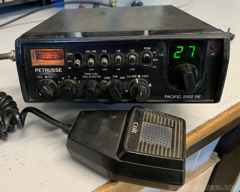 Bonjour à tous, un transceiver CB PETRUSSE PACIFIC 2002 tous modes couvre de 26065 à 27 855 P AM 8 W SSB 10 W avec micro. Prix 50 Euros sur place à Cavaillon le 11 octobre, 73’s