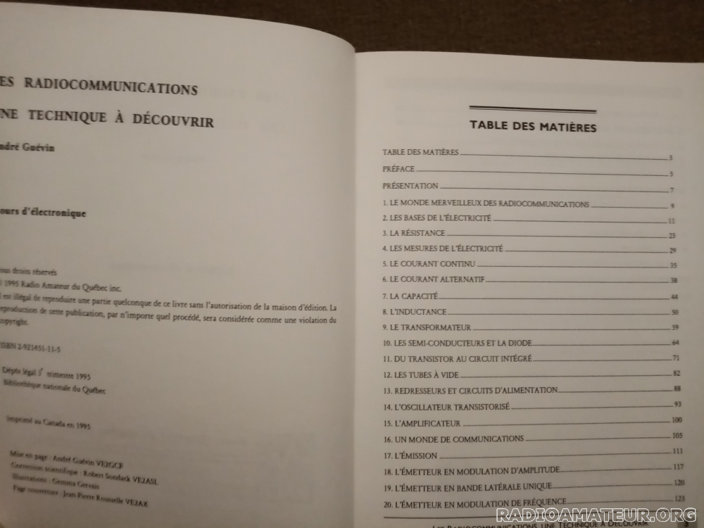 Cours d'électronique par le Québécois André Guévin VE2GCF Edité par Radio Amateur du Québec 1995 191 pages Bon état général 18,1 x 23,1 x 0,9 cm 320 g