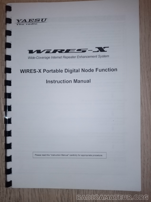 Wires-X Wide coverage internet repeater Enhancement System WIRES-X Portable digitale node function Manuel d'instruction de 50 pages. En anglais. Format A5 80 g Envoi par la Poste, Mondial Relay ou Shop2Shop. Remise en main propre sur Paris 13e (Olympiades).