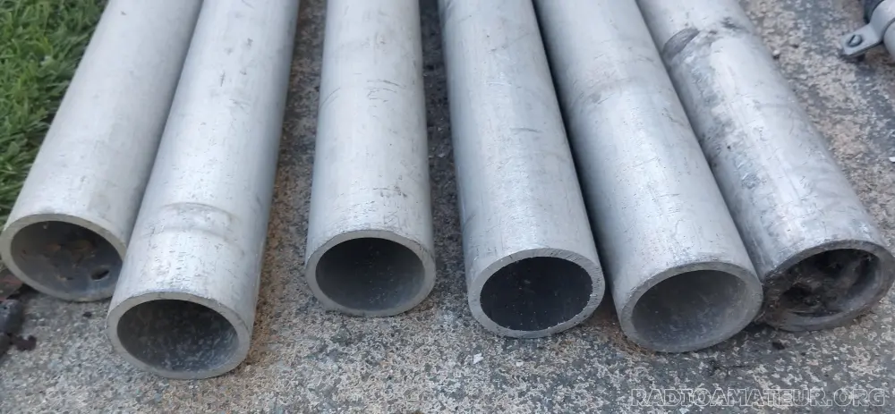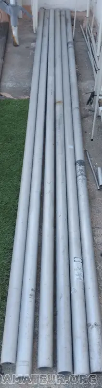 6 TUBES Aluminium de 3m – Diamètre Extérieur 48.3mm et Intérieur 39.7mm – Epaisseur 4.3mm avec 3 fixations pour obtenir 12m au total. L'ensemble 350 euros. Port en sus à déterminer. 73 de CT7ANH Christian