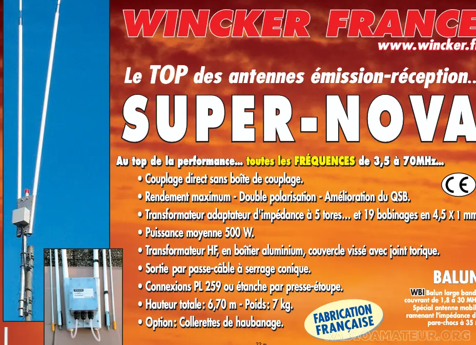 Optibeam OB 12 4, 2 éléments 40mt 3 sur 20 Mt 3 sur 17mt et 4 sur 15 Mt état neuf avec balun 5 kW prix 1500€ à enlever dans le département 79, excellent antenne pas besoin d'amplificateur au vue du gain! cage et rotor Daiwa QRO roulement prévu pour antenne lourde 350€ Echange possible TRX ou Ampli vends aussi une beam de fabrication Française F8DR 4 éléments soit: 2 éléments 14 et 2 éléments 21mhz sans trappes tout à la masse avec sa documentations pour montage et installation à réviser prix. 120€ à enlever aussi pas d'expédition, antenne vertical 2 éléments en V, Wincker 80/10 Mt sans tuner : 200€, vertical warc neuve 17/12 mètres: 100€ échange possible transceiver sur l'Optebeam. livraison possible Saratech avec reservation