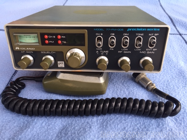 Poste Radio CB Midland pour Collection Comme en attestent les clichés proposés, il s’agit d’une CB Modèle : 77-FM 005 22 canaux FM de la marque MIDLAND. Ce poste est livré avec câble d’alimentation et microphone. Il est fonctionnel y compris les leds et l’éclairage du smeter. A signaler et comme à peine visible sur son capot supérieur une trace d’autocollant est présente