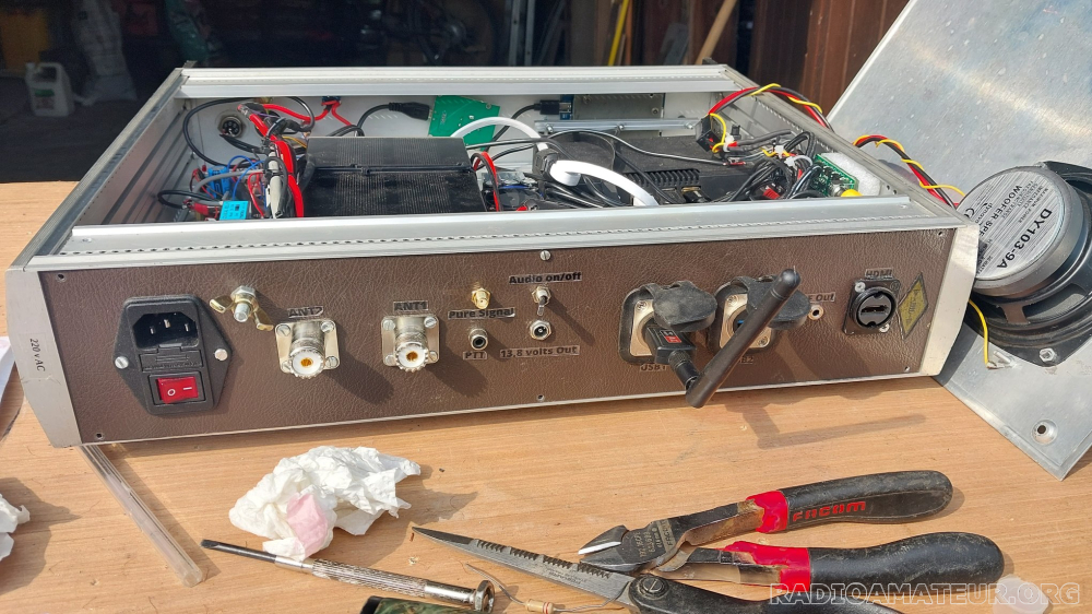 Brick2 (protocole 2), dans un très beau rack 19 ". Alim 220 volts. Pure Signal (SMA en face arrière). 2 Receivers , 1 Transmitter . LNA +20 dB, RX Dynamic Range: 110 dB , Step Attenuator 0-30 dB , RF power 160-6m up to 15W, DIGI max 10W. 2 sorties antennes 1 sortie HDMI, 2 entrées USB, Sortie PTT RCA optocouplage optique, Audio 5w , Sortie alimentation acc 12 volts, Ecran 3,5 ", VFO face avant, Filtre BPF réception 10 bandes selectionnables, Rasp PI5 intégré, HP de fort diamètre (woofer) sur le dessus du boîtier. Logiciel PiHPSDR installé et réglé...Plug and Play. Prise micro 8 broches Kenwood, Alinco (petit micro à main fourni) Avec cet engin, vous disposez d’un TRX SDR, pas courant, rien à voir avec toutes les chinoiseries habituelles.. !! , Complet et prêt à l’emploi, une fois l’engin allumé, et après le chargement de l’OS (Raspbian) et du programme, (quelques secondes), il est prêt à être utilisé, sans autres accessoires nécessaires..(Souris?) Il est plus pratique et plus reposant pour les yeux de brancher un moniteur sur l’engin, sur la prise HDMI à l’arrière, mais, seul, l’engin est « Stand Alone » . La Essb est accessible immédiatement. Port Mondial Relay offert...