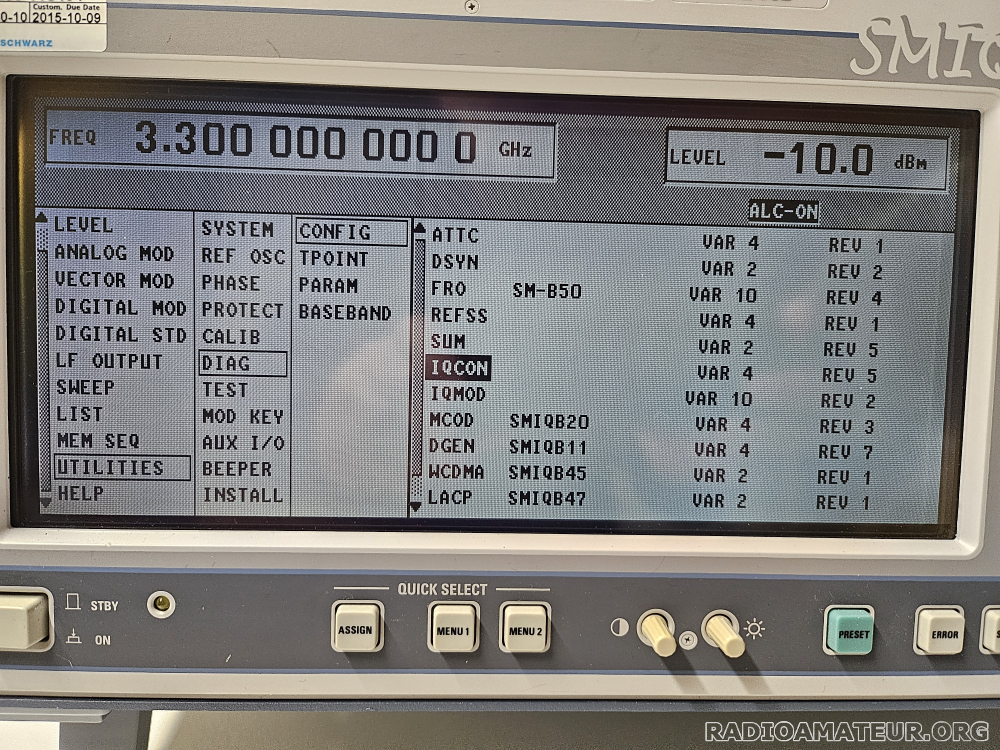 Rohde & Schwarz SMIQ03B - Générateur synthétisé modulations digitales I/Q, 300 KHz à 3,3 GHz, -144 à +13dBm, résolution 0.001Hz, programmation GP-IB. Options B11: Data generator, B20: Modulation coder, B45: Digital Standard WCDMA to 3GPP (FDD), B47: Low ACP for IS-95 CDMA and W-CDMA et B50: Fast CPU. Equipement d'occasion en parfait état, garanti 30 jours. Livraison par UPS. Facture avec TVA récupérable.