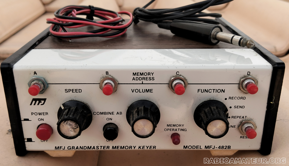 Je vends pour la famille d’un Om qui est passé QRT dernièrement ce MANIPULATEUR Electronique à mémoires MFJ-482B d'occasion. Il utilise des CMOS et une mémoire vive. Il dispose de 1024 bits d'espace mémoire permettant de stocker environ 100 caractères (4 messages de 25 caractères ou 2 de 25 caractères et 1 de 50 caractères). Fonctions de contrôle : VITESSE variable de 8 à 50 mots par minute. POIDS. Tourné à fond dans le sens inverse des aiguilles d'une montre, le rapport point-trait/espacement est parfait (1:3:1). Tournez ce contrôle dans le sens des aiguilles d'une montre pour augmenter la longueur des points-traits. RÉGULATEUR DE TONALITÉ pour régler la hauteur de l'effet local. VOLUME. Permet de régler le volume du HP interne. COMMUTATEUR DE FONCTIONS ENREGISTREMENT, ENVOI, RÉPÉTITION, SYNTONISATION. La position ENREGISTREMENT active le manipulateur mémoire pour enregistrer les messages. La position ENVOI permet la lecture des messages enregistrés. La position RÉPÉTITION permet de répéter le message en continu. Coût du transport à déterminer suivant destination. Paiement PAYPAL entre proches ou virement bancaire. 73 Christian CT7ANH