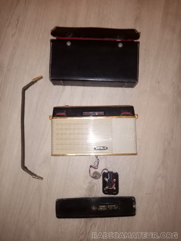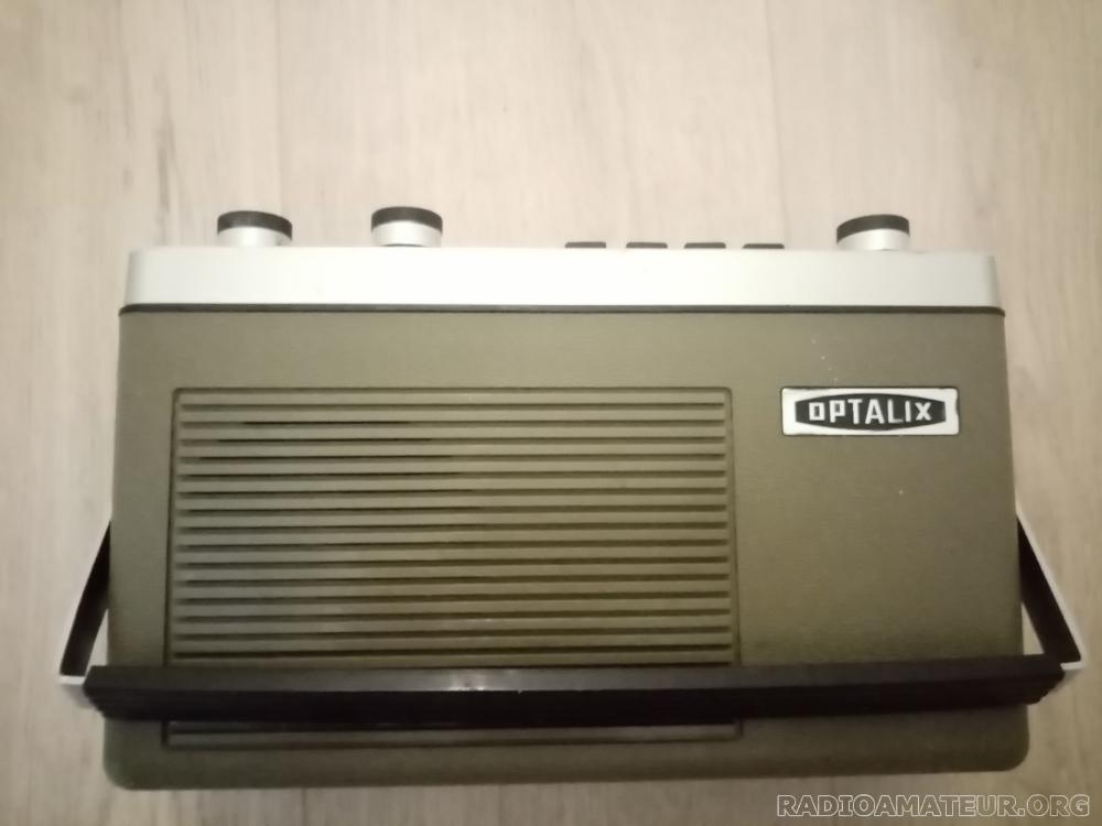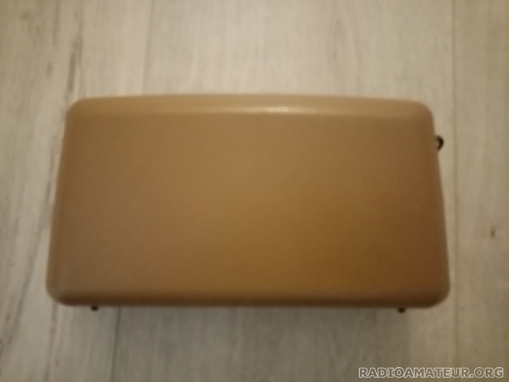 Façade marquée. Nécessite un petit point de soudure entre le câble d'alimentation négatif et le ressort du logement à piles. Equipé d'un poignée Fonctionne avec quatre piles 1,5 V AA. Reçoit la FM, en plus des GO et PO. Bouton tonalité HS. 950 g 24,8 x 14,1 x 5,2 cm plus la poignée