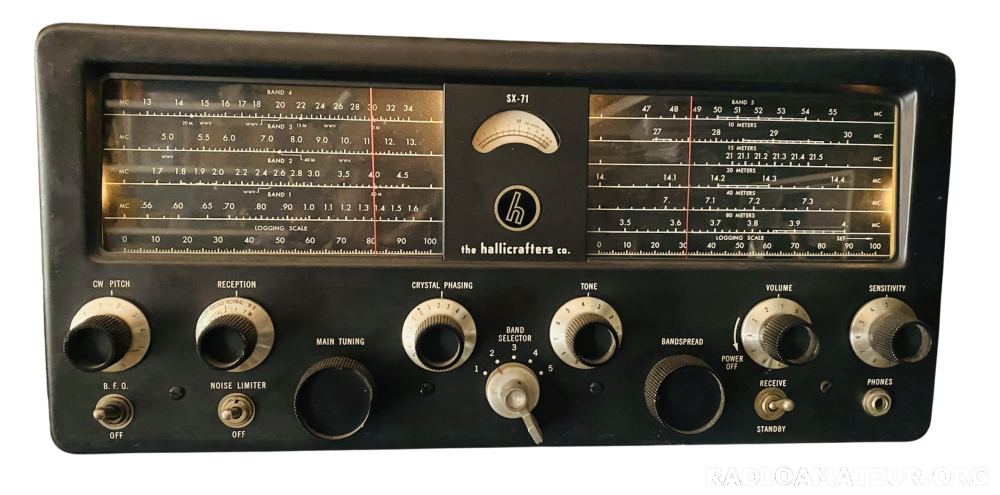 Je fais un peu de place car il y en a trop. Un superbe récepteur HALLICRAFTERS SX-71 en très bon état. Disponible au salon SUD EXPO RADIO le 11 octobre 2025.