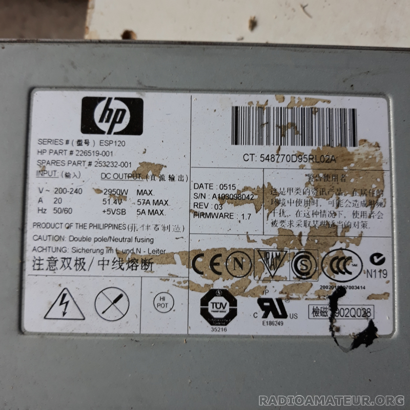 Vends en l’état alimentation HP 200 a 240Vac - 51Vdc - 57A max 73's QRO